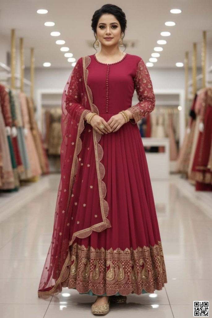 ওড়না - জর্জেট এমব্রয়ডারি কাজ করা