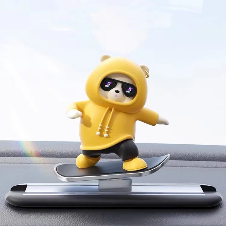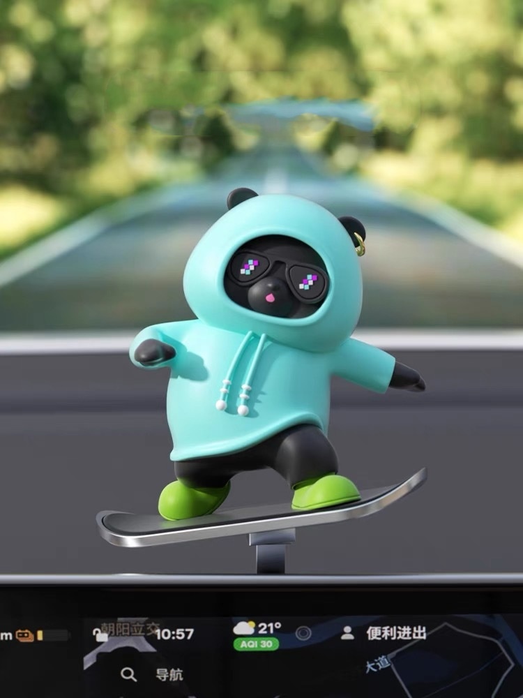 Skateboard Panda Car Dashboard Decoration - Cute Cartoon Bear Silicone Decoration, with Fashion Glasses, No Installation Required, Fun and Relaxing in Office and Bedroom, Skateboard Design