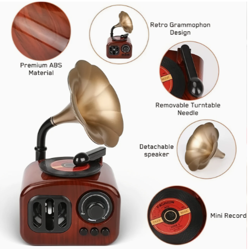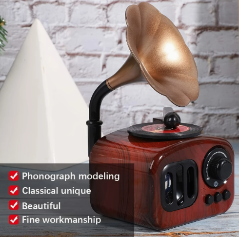 Vintage Gramophone Music Box - Miniature Phonograph Design Decor for Home, Office, Cafe - Ideal Gift for Birthdays, Valentine's, Mother's Day & New Year, Decoration Ornament, Musical Gift